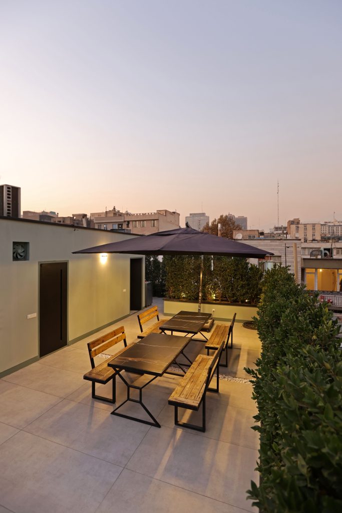 پروژه «ملک» بازسازی یک ساختمان اداری چهارطبقه در انتهای بنبست ملک در محدوده فلسطین تهران است؛ بنایی که پیشتر دفتر اصلی هلدینگ پایگان و زیرمجموعههای آن بود و اکنون با حفظ اسکلت و ساختار پیشین، در قالبی تازه بازآفرینی شده است. ایده اصلی پروژه، حفظ حافظه بنا در عین جوانسازی آن بود؛ به همین دلیل، ستونهای اکسپوز و پلههای سنگی در جای خود باقی ماندهاند تا گذشته در میان مصالح جدید به حیات ادامه دهد. سازمان فضایی هر طبقه بر اساس پلان باز با مرکزیت خدماتی شکل گرفته است؛ باکسی میانی که فضاهای سرویس و استراحت را در خود جای میدهد و فضاهای کاری پیرامون آن، با پارتیشنهای شیشهای از هم جدا شدهاند. نما با اندکی چرخش به سمت کوچه، بافت پیرامون را درگیر کرده و ارتباطی تازه با محیط برقرار میکند. در این پروژه، عناصر فنی اجتنابناپذیر با طراحی مجدد و رنگ سبز شاخص بنا، به اجزایی کاربردی و هماهنگ بدل شدهاند؛ عناصری که از ورودی تا بام امتداد یافته و هویت بصری یکپارچهی پروژه را شکل میدهند.