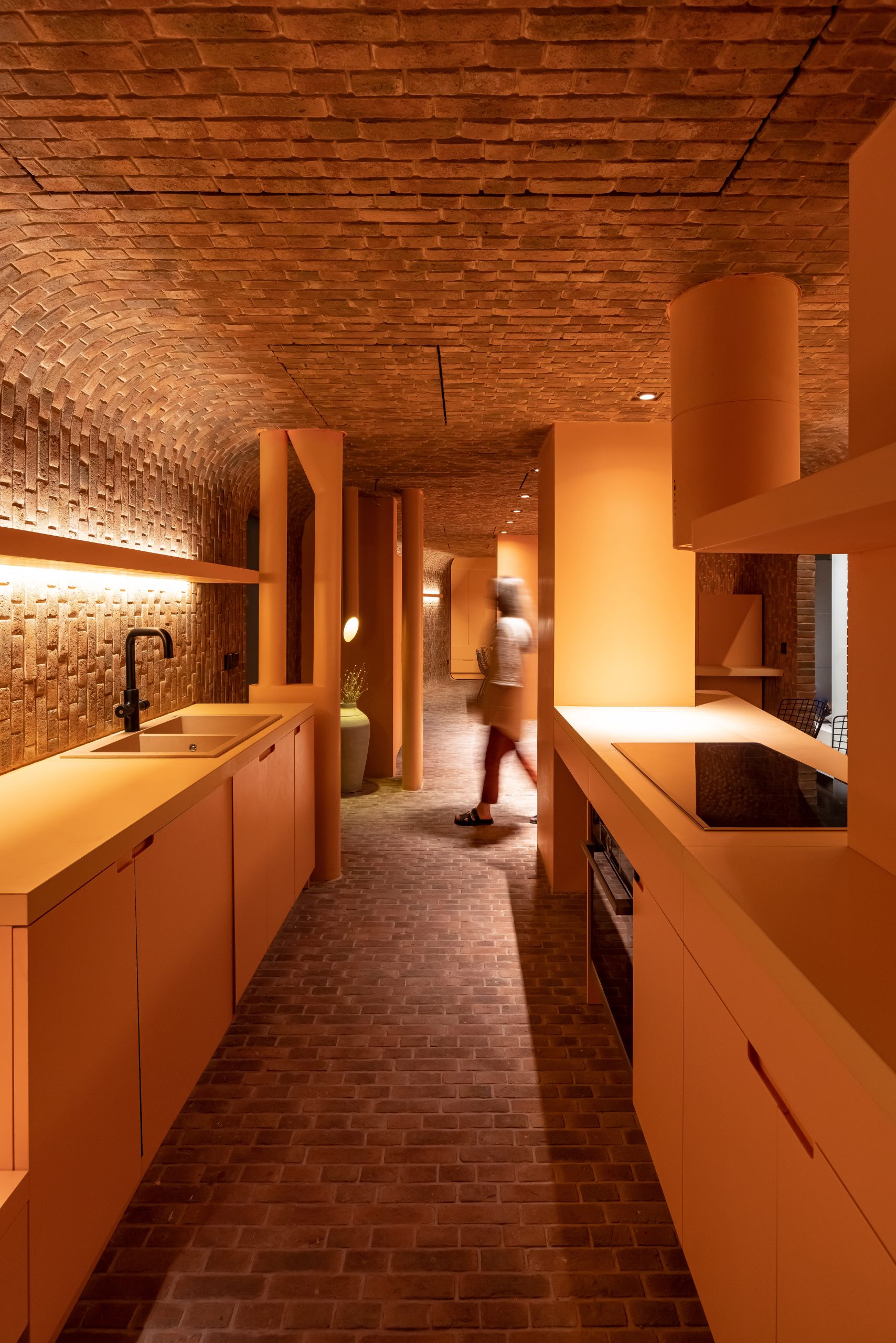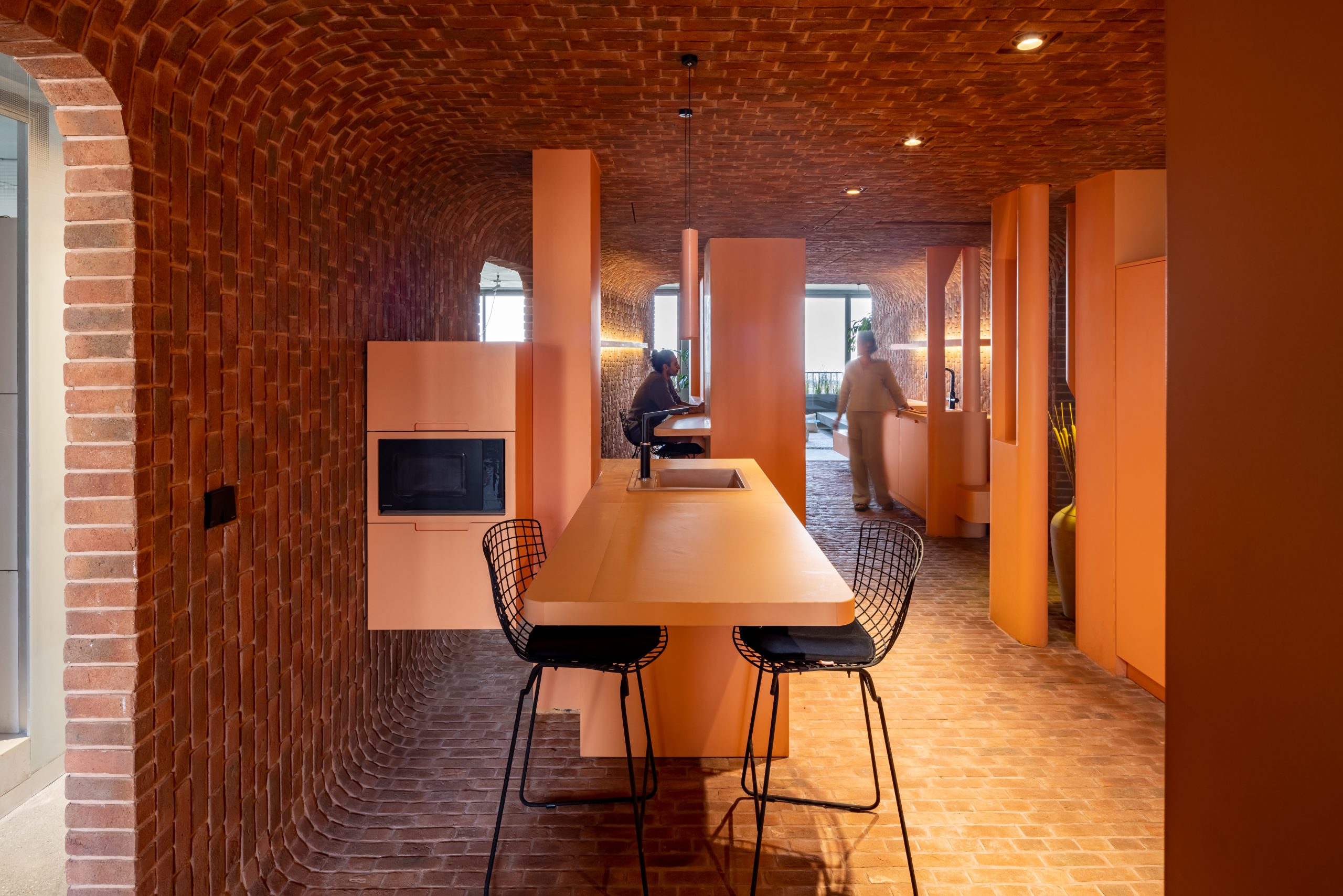 معماری چهارصفه در این خانه باعث شده که آشپزخانه به یک فضای منحصربهفرد تبدیل شود. آشپزخانه در مرکز خانه، به صورت یک پاکت میانی قرار دارد که بخشهای مانند محل شستن ظرفها، محل نگهداری خواروبار و محل پخت و پز را به صورت تفکیک شده در خود جای داده است. همچنین آشپزخانه به صورتی به اتاقها راه دارد که هر فرد میتواند با حضور در آشپزخانه، تعامل و ارتباط را تجربه کند و پس از صرف غذا به فضای خصوصی خود بازگردد.